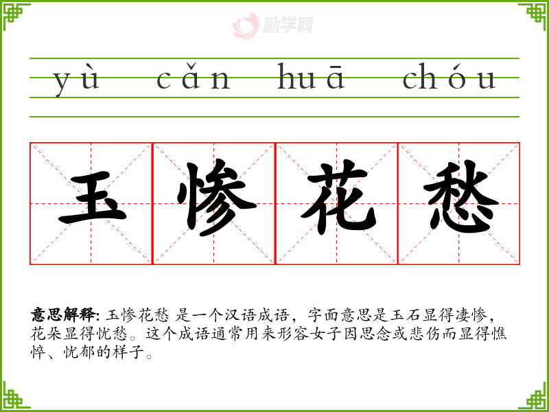 1.玉惨花愁的拼音是什么?玉惨花愁怎么读?