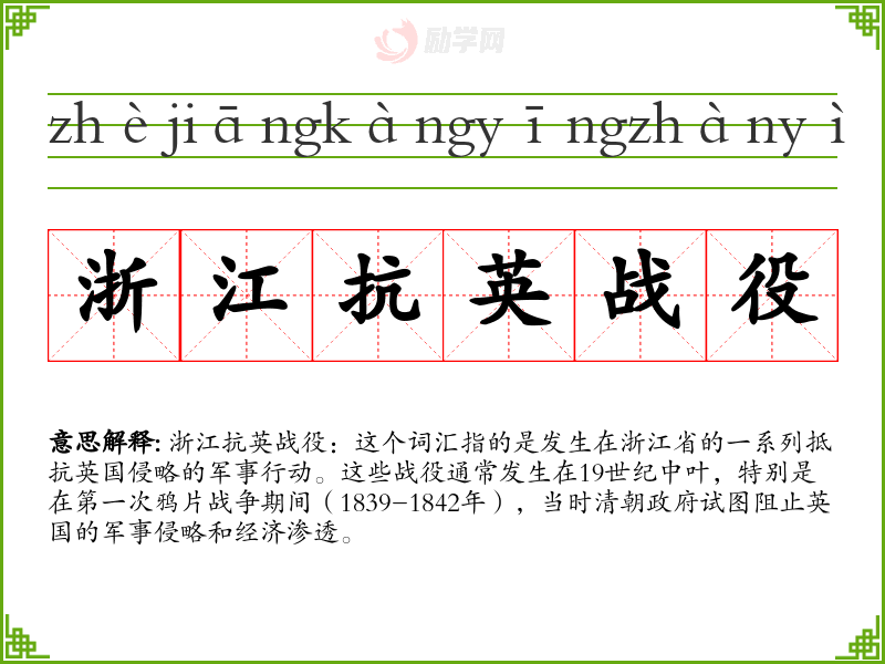 1.浙江抗英战役的拼音是什么?浙江抗英战役怎么读?