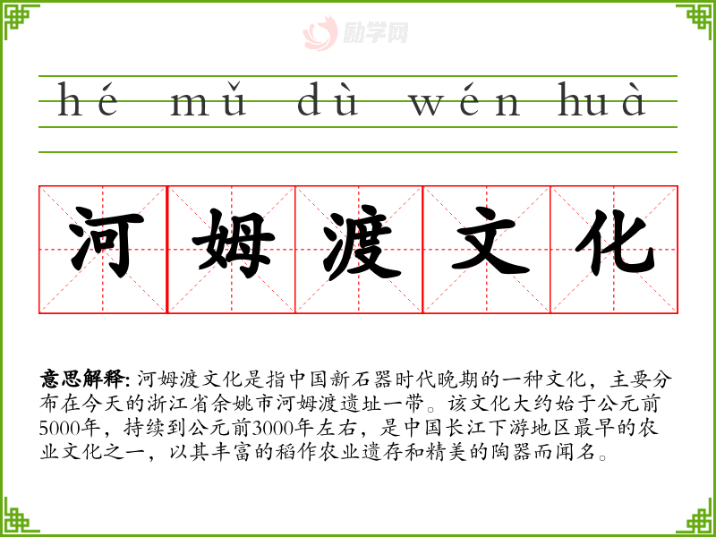 1.河姆渡文化的拼音是什么?河姆渡文化怎么读?