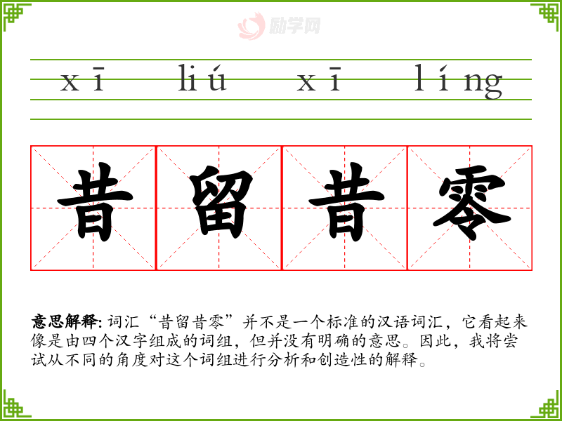 由于“昔留昔零”不是一个标准词汇,我们可以尝试对其进行字面解释:
