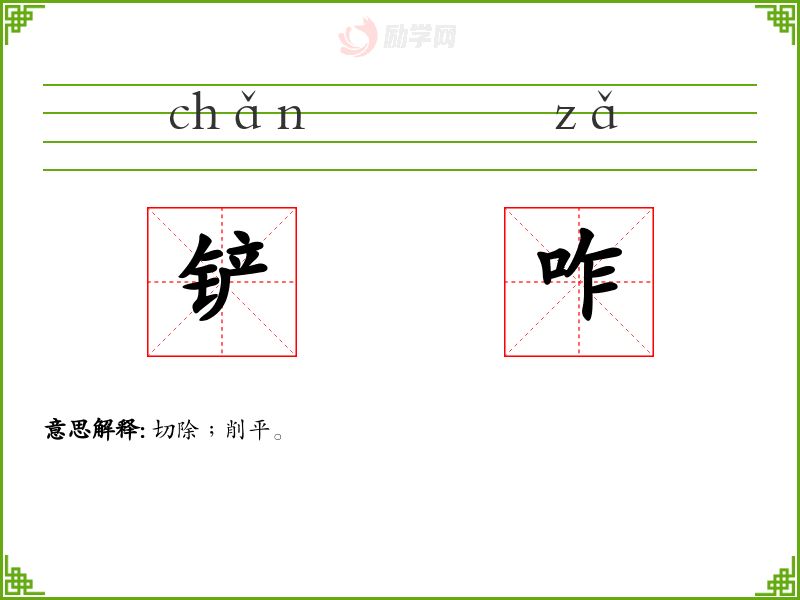 铲咋的意思是:切除﹔削平。