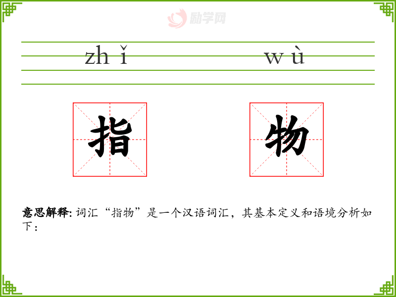 词汇“指物”是一个汉语词汇,其基本定义和语境分析如下: