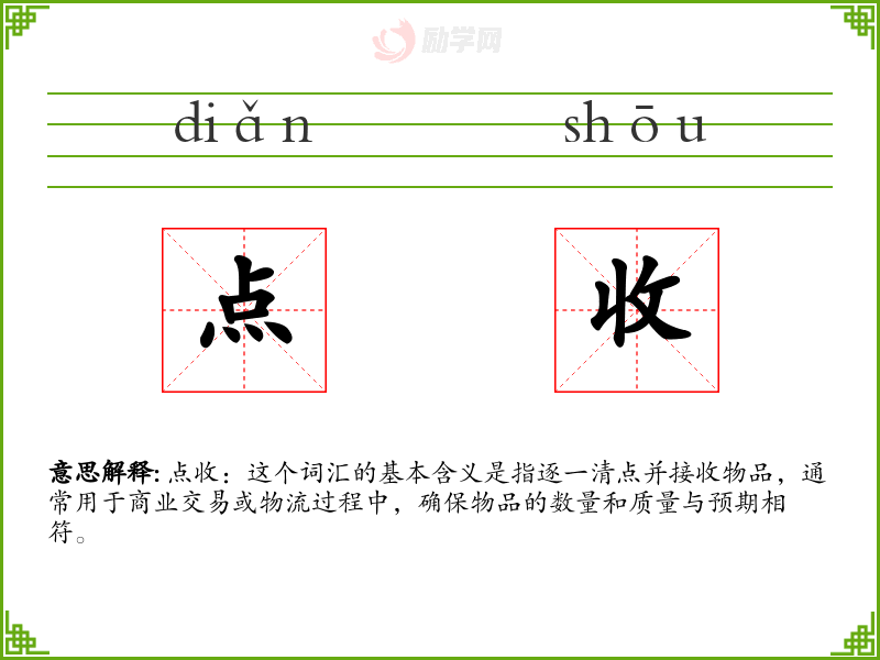1.点收的拼音是什么?点收怎么读?